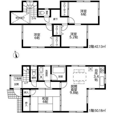 | 間取り(内訳) | 4LDK(和6洋6/6/5.2LDK13.2) | 建物面積 | 92.31㎡ |